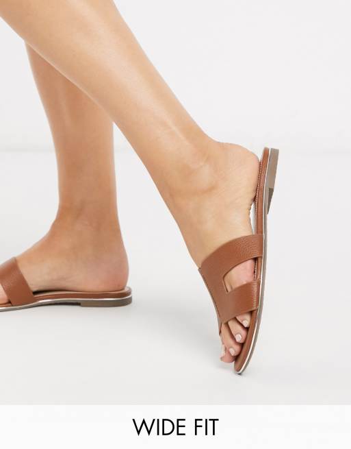 Dune loopy wide fit slip on flat sandals in tan Very well made.