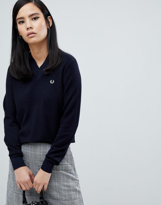 Fred Perry V Neck Jumper Sale Outlet Grey Womens Knitwear Very well made.