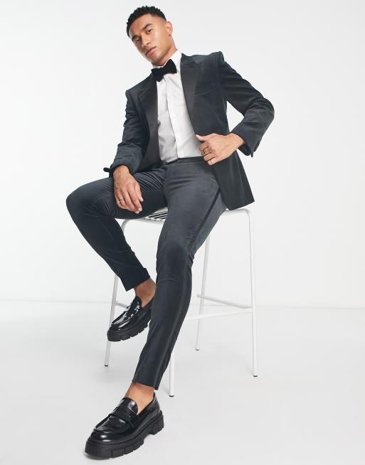 Noak Giacca da abito stile smoking skinny in velluto nero Very well made.