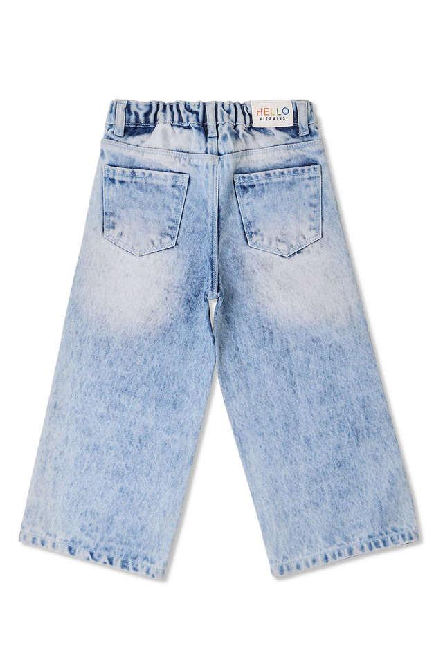 Kids Girl Loose Wide Leg Jeans Elastic Waist Denim Pants Trouser 3 13 Years Blue Very well made.