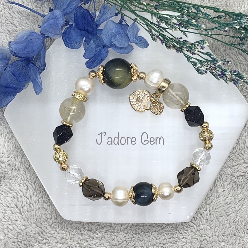 Moscow Crystal Bracelet Yellow Blue Tiger Eye Gold Rutilated Very well made.