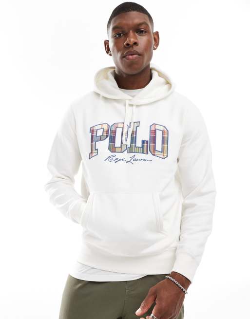 Polo Ralph Lauren Felpa bianco sporco in pile con cappuccio e logo stile college a quadri ASOS Very well made.
