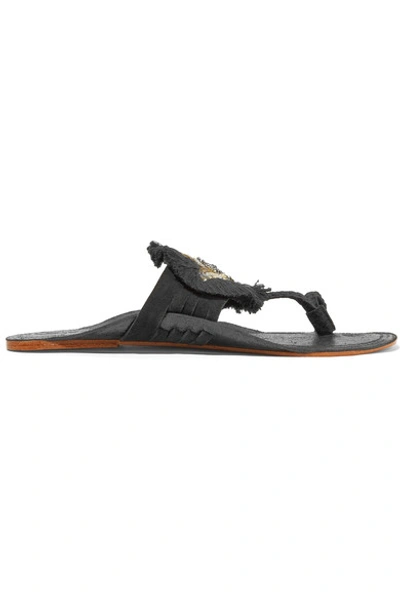Figue Evil Eye Embellished Suede And Leather Sandals In Metallic Black ModeSens Very well made.