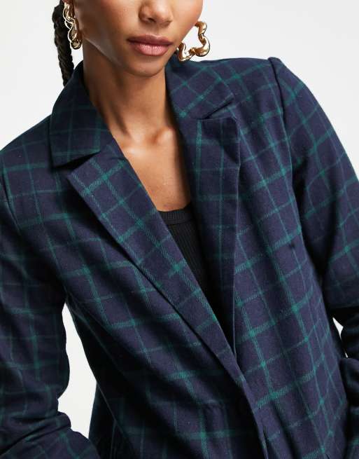 Heartbreak Tall slouchy boyfriend blazer in navy and green check Very well made.