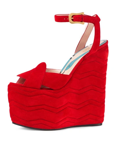 Gucci Sally Suede Platform Wedge Sandal Red ModeSens Very well made.