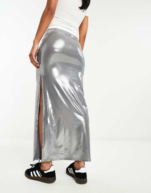 Bershka Gonna lunga metallizzata argento effetto liquido ASOS Very well made.