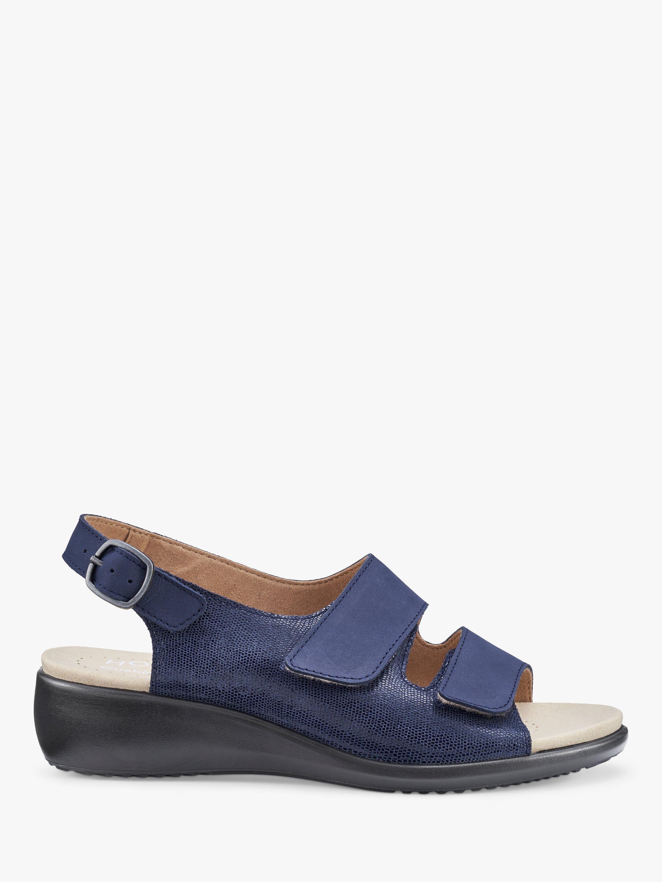Hotter Easy II Extra Wide Fit Faux Lizard Leather Low Wedge Sandals Denim Navy Very well made.