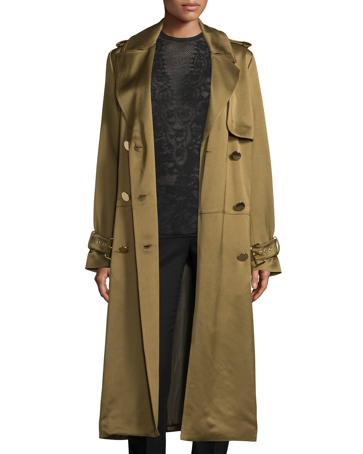 Double Breasted Satin Trenchcoat Khaki Very well made.