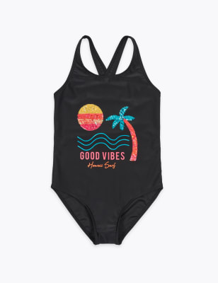 Good Vibes Slogan Sequin Swimsuit 6 16 Yrs M S CA Very well made.