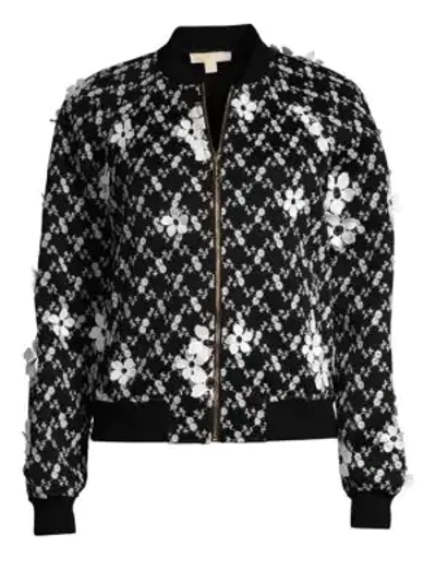 MICHAEL KORS Floral Embroidered Faux Leather Bomber Jacket Very well made.