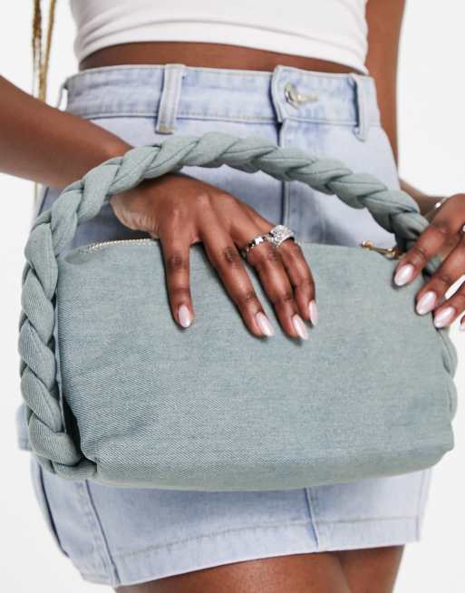 Glamorous mini grab bag with woven handle in denim Very well made.