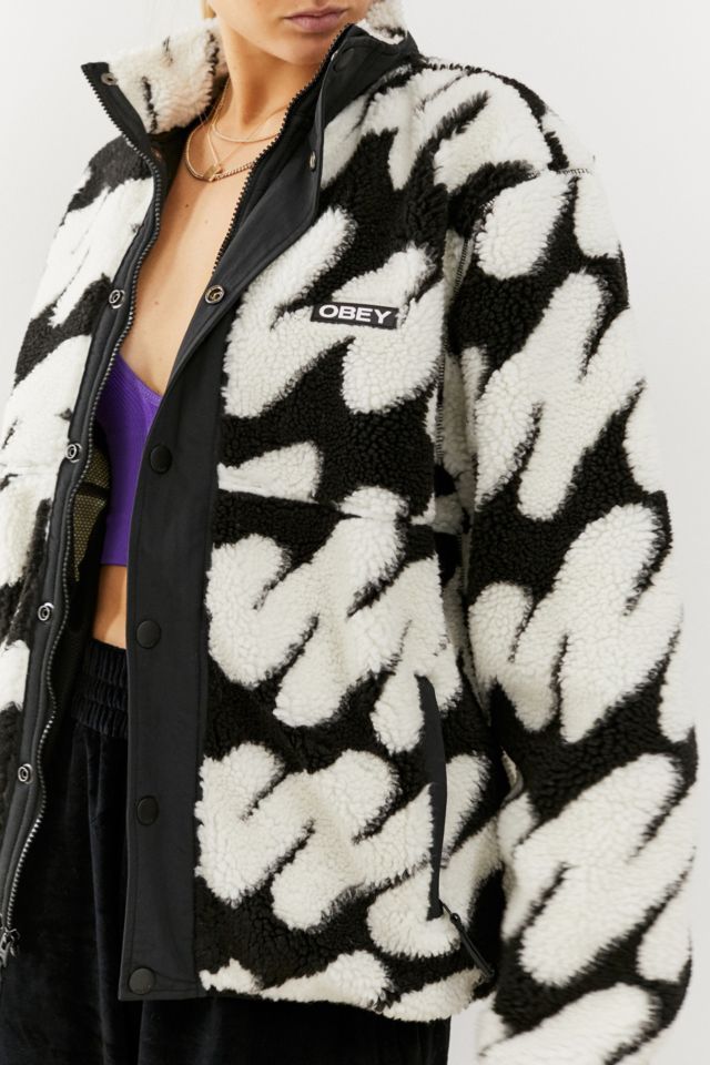 Obey oversized zip up fleece jacket in floral borg with logo Very well made.