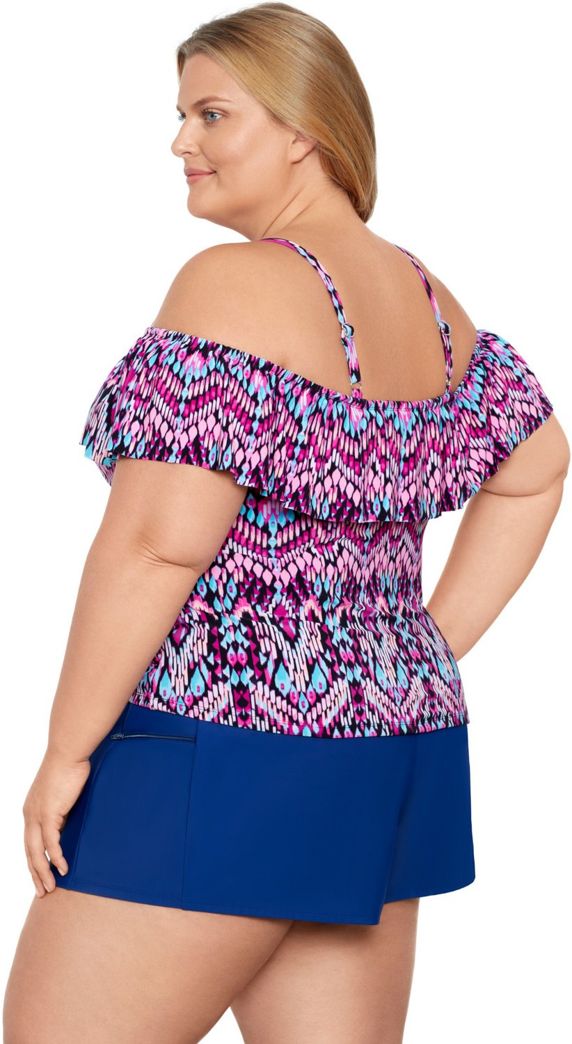 Coastal Cove Women s Tribal Cold Shoulder Plus Size Tankini Top Very well made.