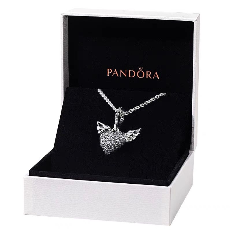 Pandora Angel Wings Heart Necklace 925 Silver Micro Set Diamond Very well made.