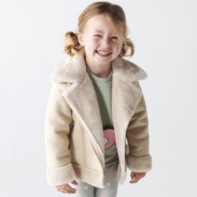 River Island Mini Girls Cream Faux Fur Aviator Jacket 35.00 Very well made.