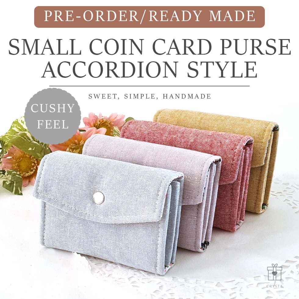 READY MADE Handmade Fabric Small Compact Minimalist Purse Wallet for coin cards Accordion style Very well made.