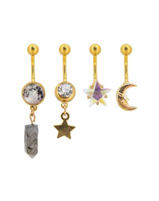 Multi Pack Star Moon CZ Dangle Belly Rings 4 Pack 14 Gauge Very well made.