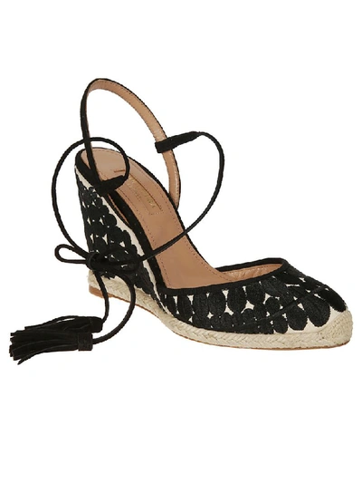 Aquazzura Fez 85 Natural Canvas Black Embroidered Espadrilles Very well made.