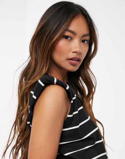 Mango Canotta con spalline imbottite in cotone a righe WHITE Very well made.