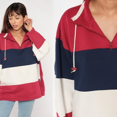 Color Block Sweatshirt 90s Red White Blue Striped Quarter Zip Shop Exile Tucson AZ Very well made.