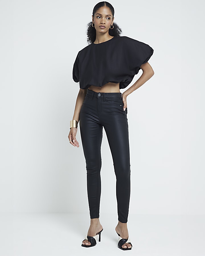 Black coated denim high waisted skinny jeans River Island Very well made.
