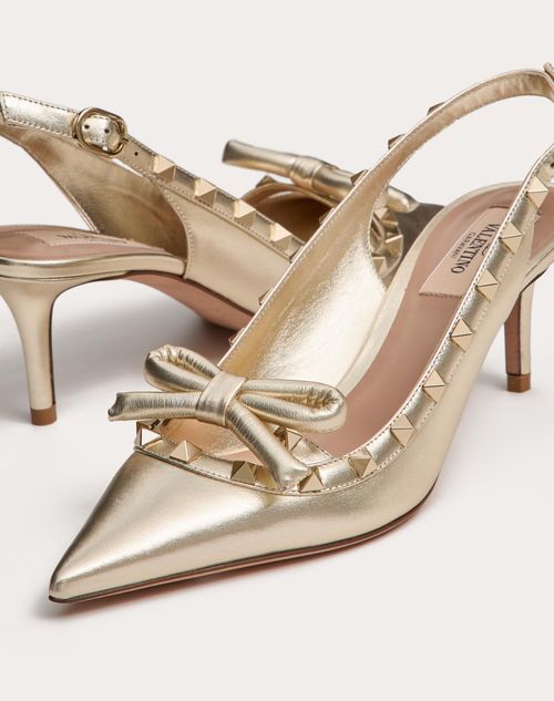 Rockstud Bow Slingback Pumps In Laminated Nappa Leather And 60mm Tone Studs for Woman in Platinum Valentino SA Very well made.