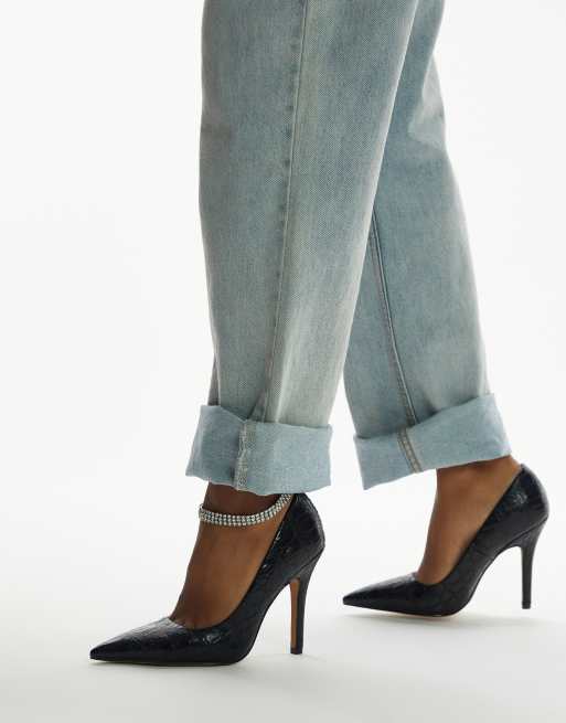 Topshop Effy heeled court shoe in black croc ASOS Very well made.