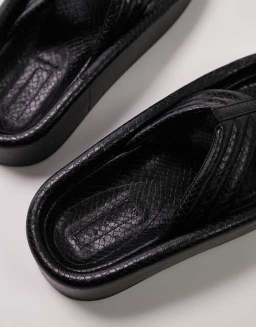 Topshop Gigi toepost sunken footbed sandals in black lizard Very well made.