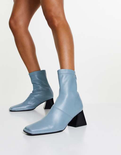 Topshop Hazel leather block heel ankle boot in blue Very well made.