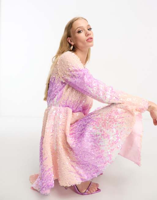 True Decadence sequin long sleeve playsuit in purple and pink Very well made.