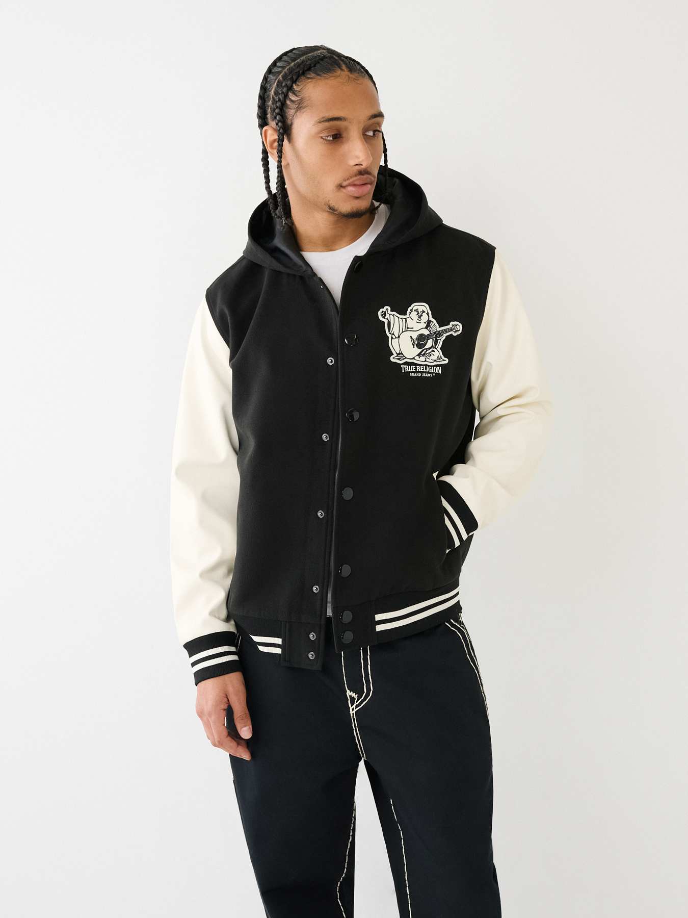 BUDDHA LOGO HOODED VARSITY JACKET Very well made.