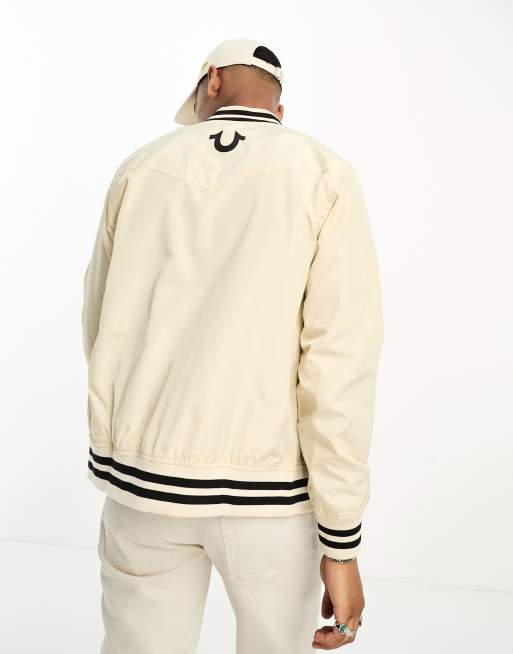 True Religion varsity jacket in stone Very well made.