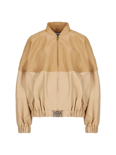 Loewe Two tone Leather Bomber Jacket In Beige ModeSens Very well made.