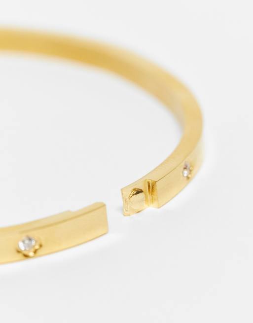 ASOS DESIGN stainless steel bangle with crystal design in gold Very well made.
