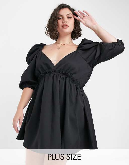 In The Style Plus x Lorna Luxe mini smock dress with exaggerated Very well made.