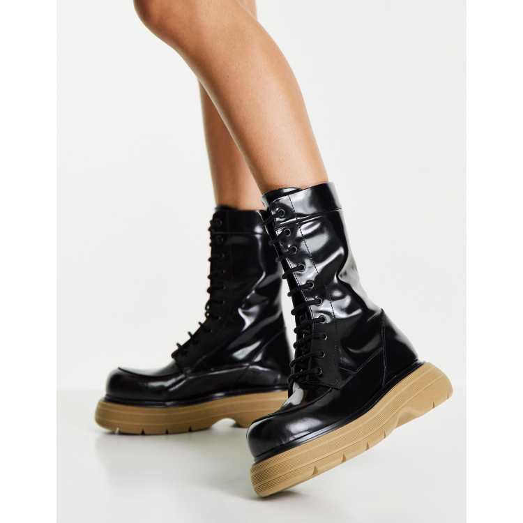 ASOS DESIGN Acoustic chunky lace up boots in black patent ASOS Very well made.