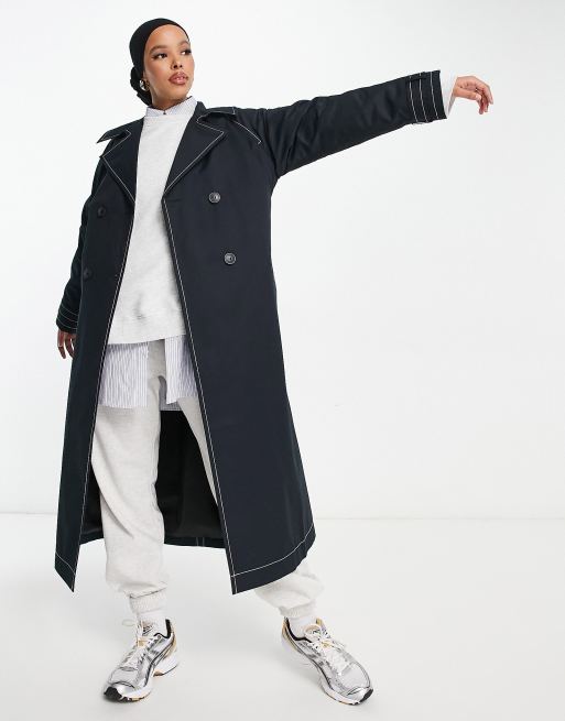 ASOS DESIGN contrast stitch trench coat in black ASOS Very well made.