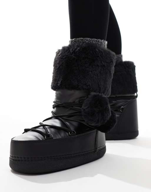 Public Desire Aster snowboots with faux fur trim and pom pom detail in black Very well made.