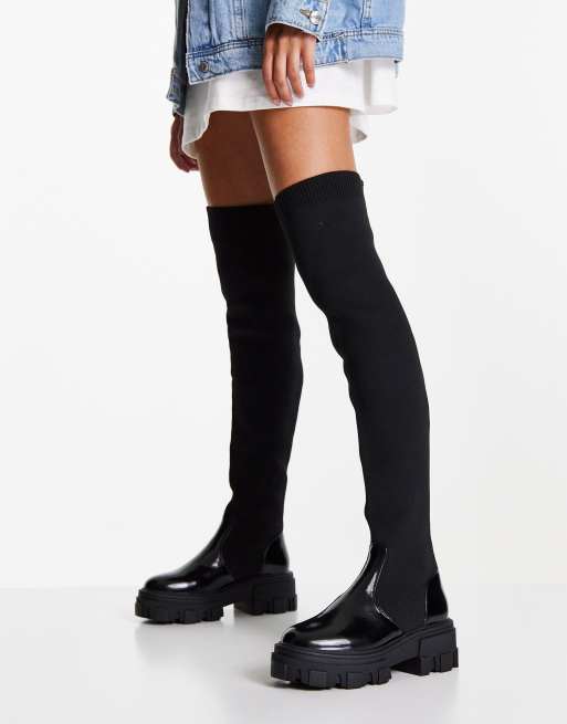 Topshop Kate Overknee Stiefel in Schwarz mit dicker Sohle ASOS Very well made.