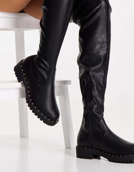 ASOS DESIGN Kimmy Flache Overknee Stiefel in Schwarz mit Very well made.