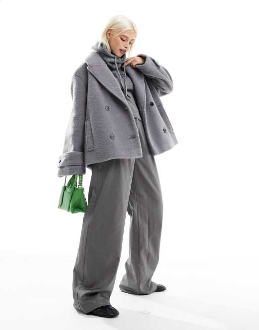 ASOS DESIGN textured cosy pea coat in pale grey Very well made.