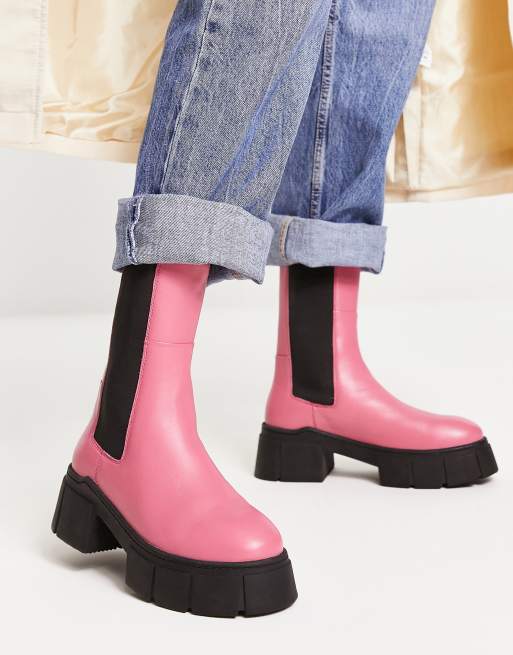 ASOS DESIGN platform heeled chelsea boots in pink faux leather Very well made.