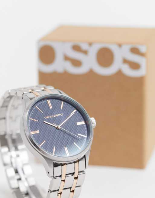 ASOS DESIGN bracelet watch with blue face in silver and gold tone Very well made.