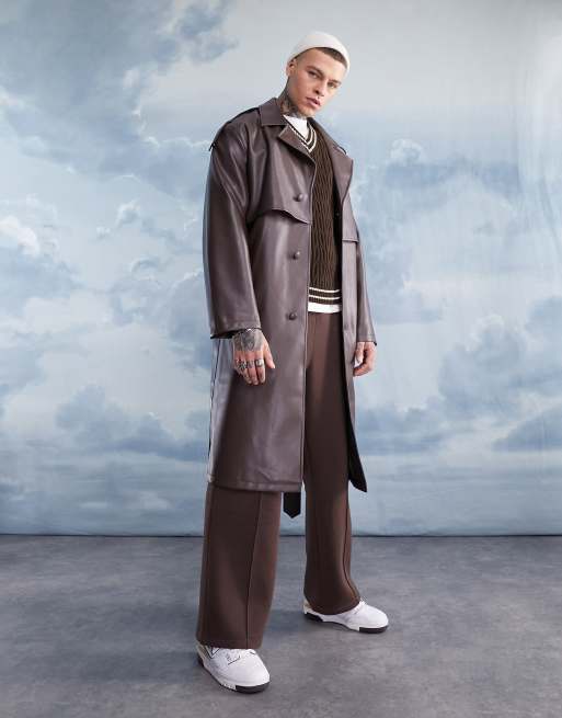 ASOS DESIGN extreme oversized faux leather trench coat in brown ASOS Very well made.
