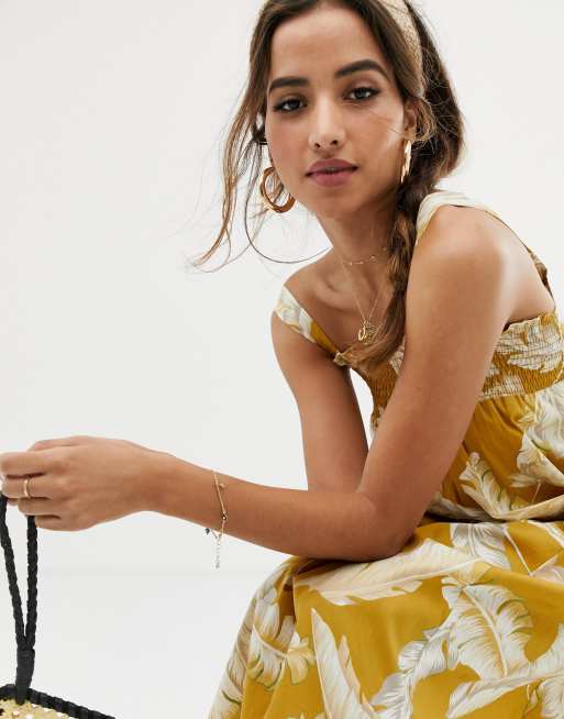 ASOS DESIGN Vestito estivo midi a trapezio in cotone con palme Very well made.