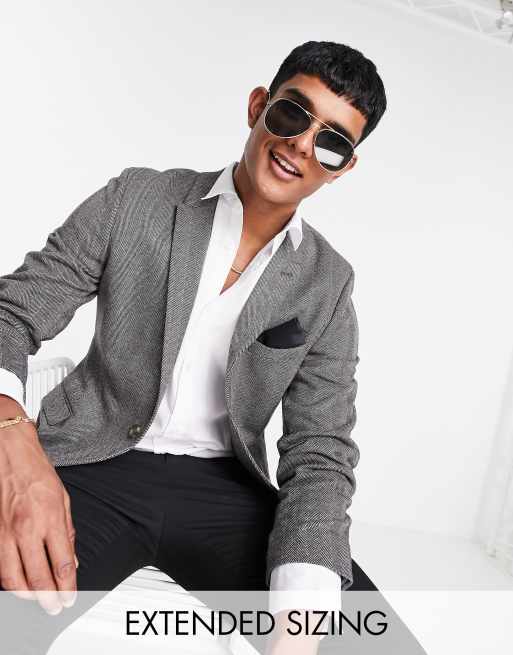 ASOS DESIGN super skinny wool mix blazer in oatmeal herringbone ASOS Very well made.