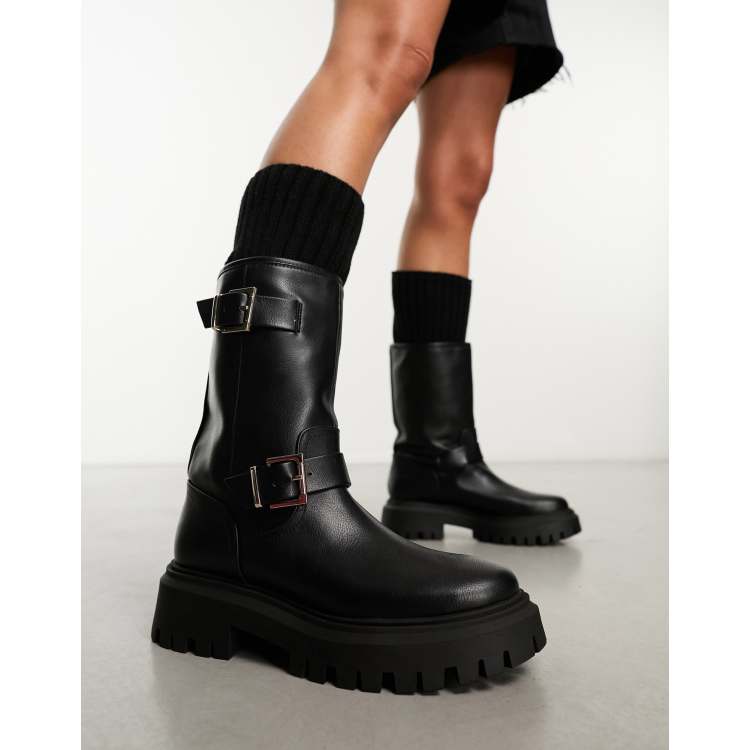 Stradivarius Stivali alti stile biker neri con fibbie ASOS Very well made.