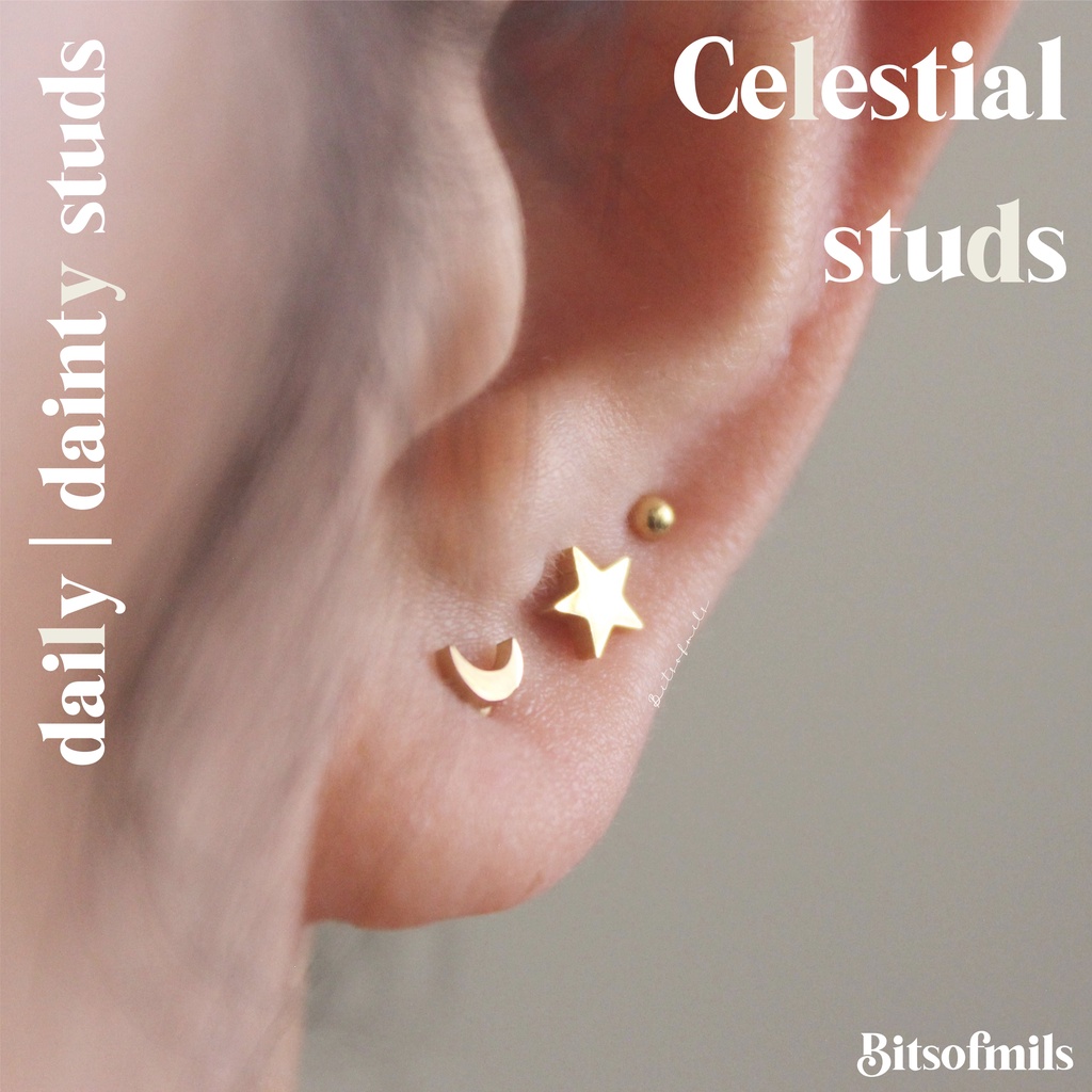 Bitsofmils Stars Moon Stud Earrings Minimalist Dainty studs Shopee Philippines Very well made.
