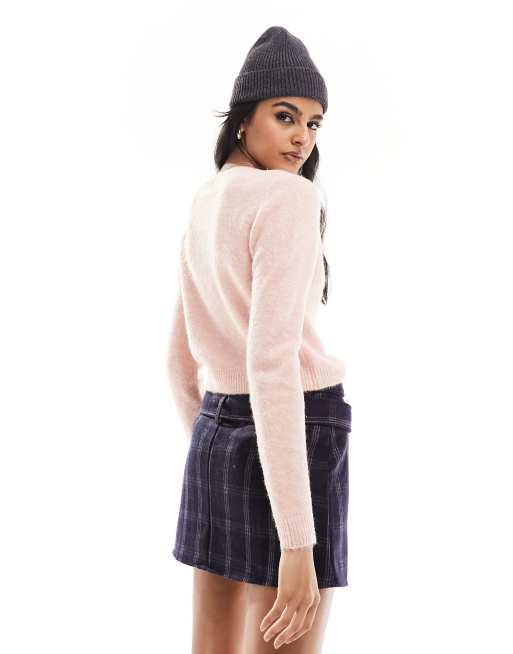 Cotton On fitted crop crew neck cardigan in baby pink Very well made.