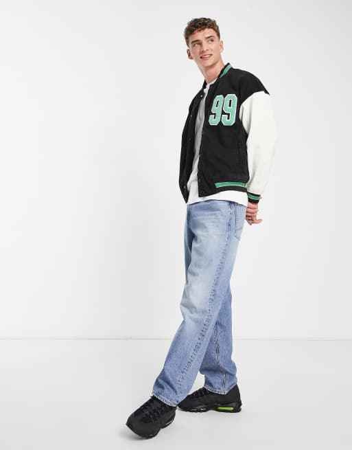 Bershka contrast sleeve varsity jacket in black ASOS Very well made.